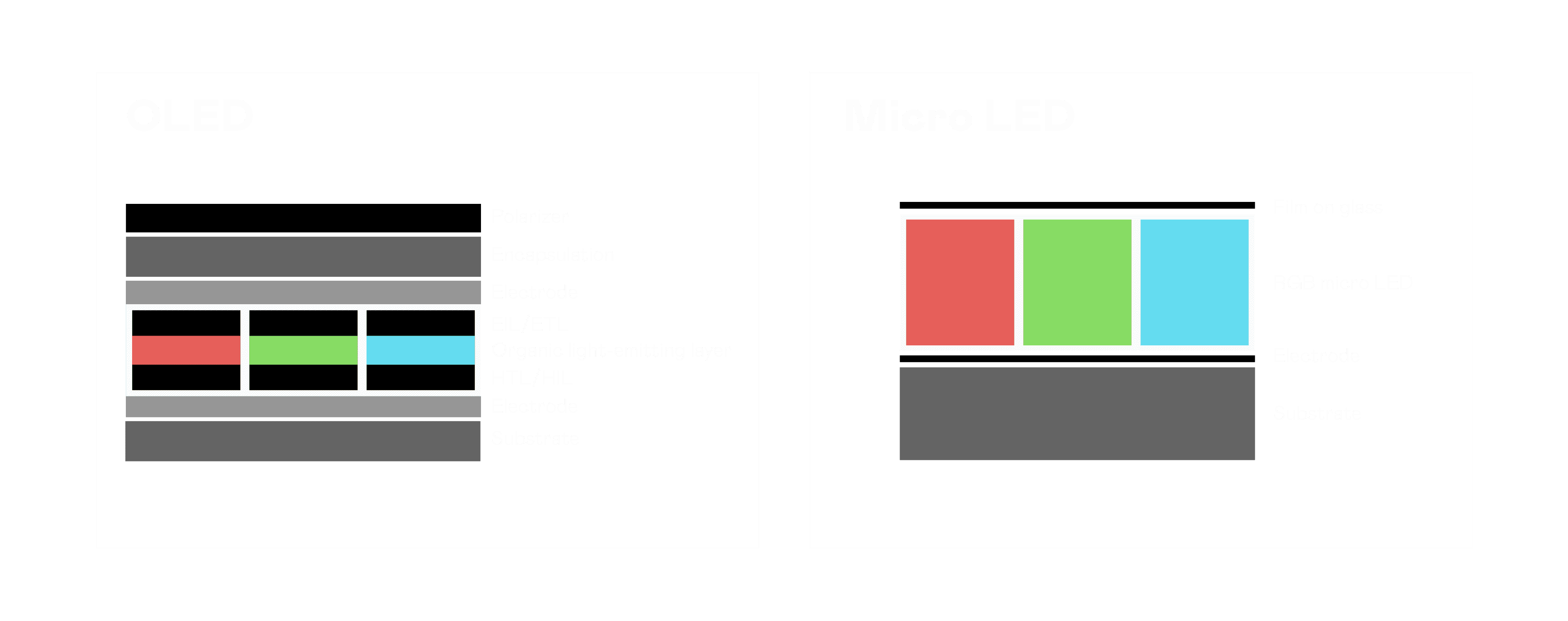 以 LED 做为显示画素,,,,可让 LED 的发光效率发挥到极致,,从而让显示器具备优异的亮度表现,,,,不论是在户外或室内,,均具备出众的显示效果。。。。同时,,,与使用有机材料的 OLED 相比,,,,LED 具备更稳定、、、、寿命更长的特性,,,,不仅不会有画面烙印问题,,而且更不容易出现故障、、坏点。。。。